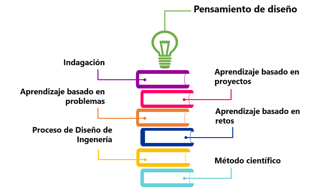 El diseño, o pensamiento de diseño, puede proporcionar un marco de referencia para respaldar una visión ampliada de la enseñanza STEAM. El pensamiento de diseño proporciona una estructura para que los maestros con incertidumbre desarrollen prácticas más creativas e interdisciplinarias, como un marco para guiar su pensamiento y como parte de las experiencias STEAM de sus estudiantes (Henriksen, 2017). Hynes et al., (2012) señalan que el proceso de diseño de ingeniería no se basa en un pensamiento rígido, sino que provoca un pensamiento creativo y fuera de la caja. El propósito del aprendizaje de diseño de ingeniería es animar a los estudiantes a interactuar con la ingeniería en actividades prácticas, en la cual se identifica y define claramente la necesidad o problema, investigación, planificación y lluvia de ideas, pruebas, evaluación y la comunicación.