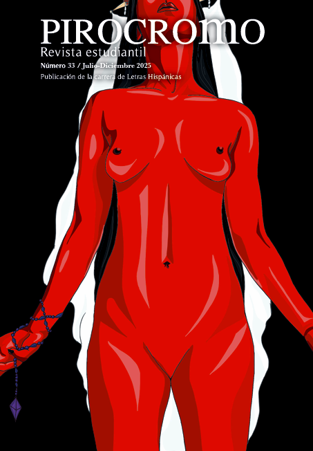 No. 33 (2025)PIROCROMO, número 33, julio-diciembre 2025, es una publicación semestral editada por la Universidad Autónoma de Aguascalientes a través del Departamento de Letras Hispánicas y el Centro de las Artes y la Cultura. Avenida Universidad No. 940, Edificio 214, piso 2, Ciudad Universitaria, C.P. 20100, Aguascalientes, Ags., México. Tel. (449)9107400, ext. 58205. https://revistas.uaa.mx/index.php/pirocromo, revistapirocromo@gmail.com. Editora responsable: Sandra Reyes Carrillo. Reserva de Derechos al Uso Exclusivo: 04-2022-042710220900-102; e-ISSN: en trámite, ambos otorgados por el Instituto Nacional del Derecho de Autor. Responsable de la última actualización de este número: Xamira Martínez Márquez, Avenida Universidad No. 940, Ciudad Universitaria, C.P. 20100, Aguascalientes, Ags. Fecha de última modificación: 11 de septiembre de 2025.